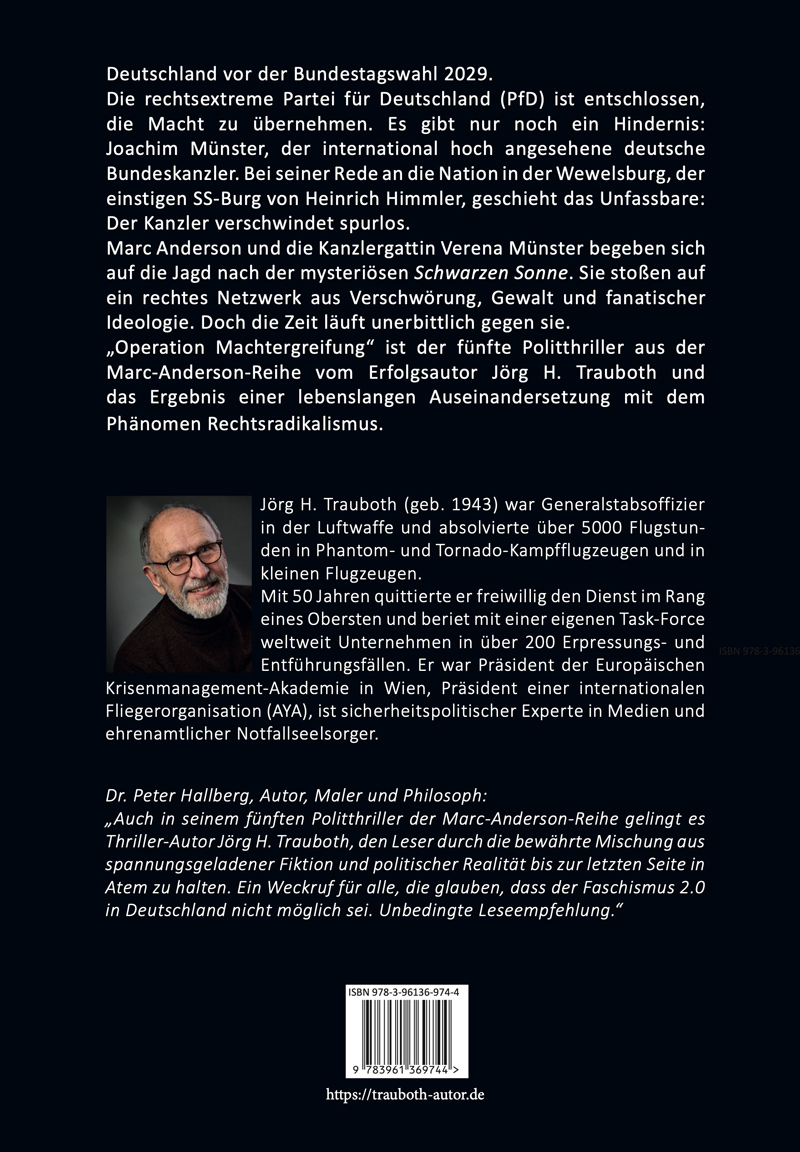 „Machtergreifung“ ist der fünfte Politthriller aus der Marc Anderson-Reihe vom Erfolgsautor Jörg H. Trauboth.