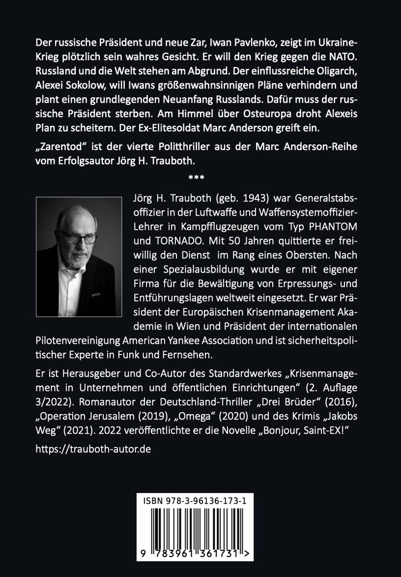 „Zarentod“ ist der vierte Politthriller aus der Marc Anderson-Reihe vom Erfolgsautor Jörg H. Trauboth.